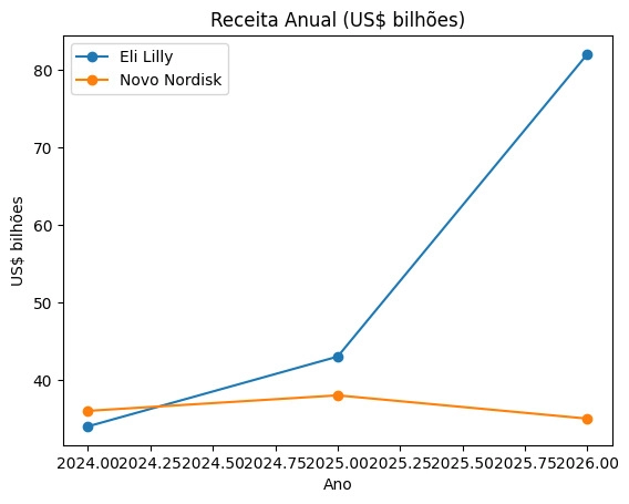 A Eli Lilly projeta receita próxima de US$ 80+ bilhões, indicando: