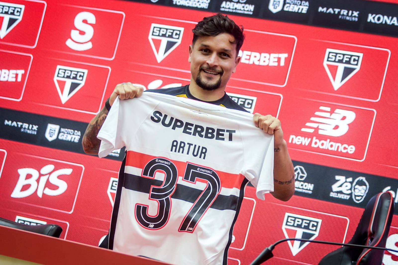 O atacante Artur Victor, de 28 anos, foi apresentado oficialmente pelo São Paulo FC nesta segunda-feira, 30 de março de 2026, no SuperCT da Barra Funda. O jogador, que pertence ao Botafogo, chega por empréstimo até o fim da temporada de 2026 e vestirá a camisa 37